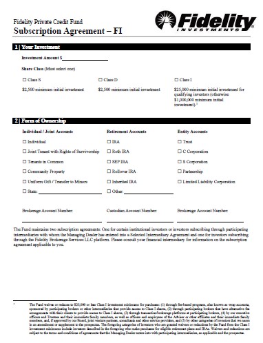 Fidelity Private Credit Fund Additional Subscription Agreement